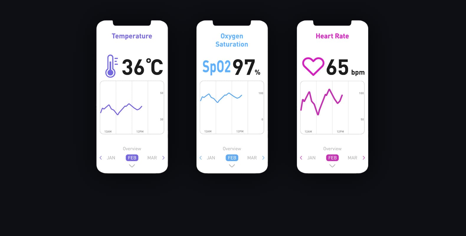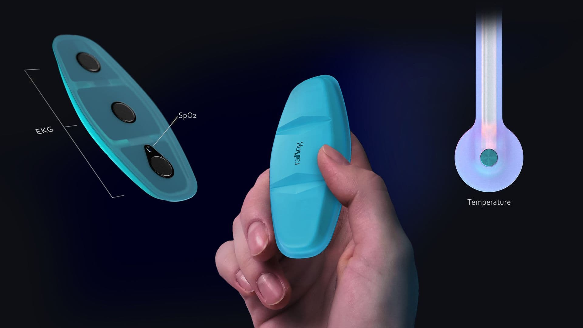 Gute Bedienbarkeit war einer der wichtigsten Aspekte bei der Gestaltung von Temp+. Auf der Rückseite sitzt eine austauschbare, medizinische Klebefolie. Sie fixiert Temp+ oberhalb des Herzens am Körper. Ein Flachkabel nahe der Achsel erweitert die Sensoren für eine präzise Temperaturmessung. Die äußere Hülle besteht aus flexiblem, wasserabweisendem Silikon, das sich leicht reinigen lässt.