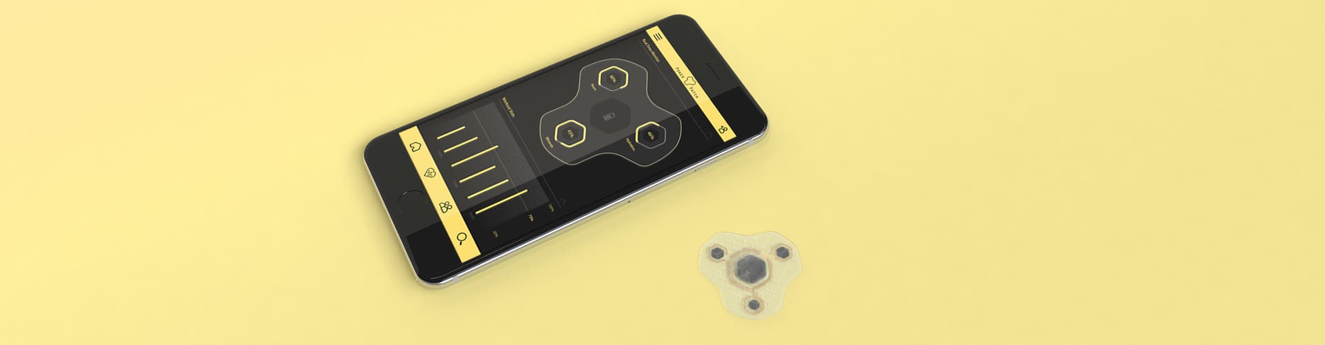An almost invisible wearable to improve your performance and to detect physical problems. During the course of a day it collects data and the corresponding app calculates a personal performance curve. In the course of the roll-to-roll-production, the electronic components are integrated into the material, whereby an extremely flat patch is feasible.