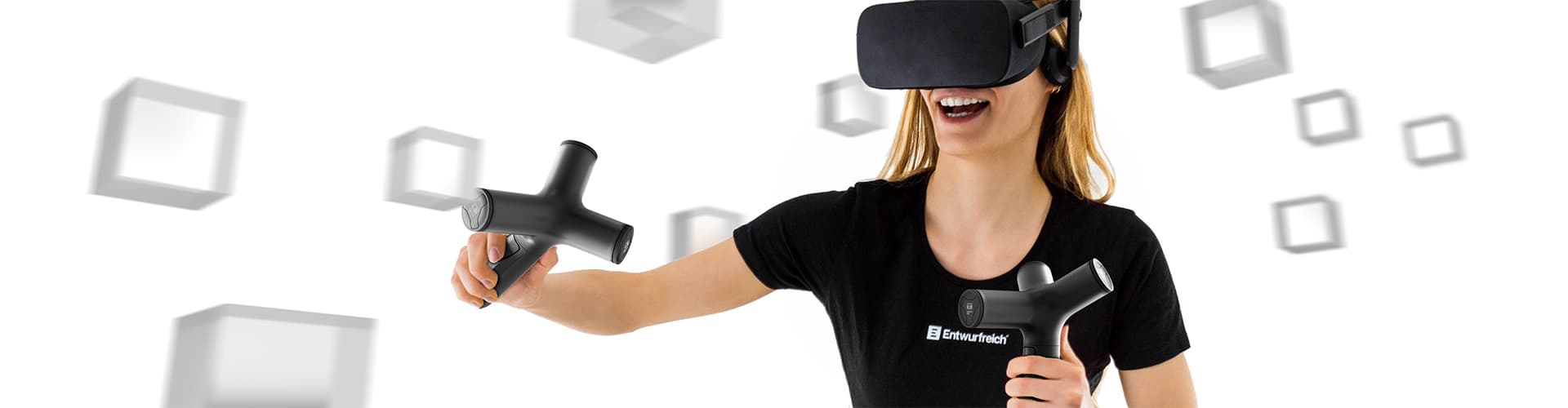 Often, the illusion cast by the virtual world shatters exactly at the moment when we don't receive realistic haptic feedback. Current controllers do have integrated vibration engines, but these are usually only good enough for a rudimentary reproduction of the virtual world. That's why at ENTWURFREICH, we explore new ways of sending more authentic and more realistic virtual reality feedback to the player in order to create a more desirable user experience. Even if current controller generations already contain good systems, other technologies will be necessary in order to allow players to delve even more deeply into the virtual world.